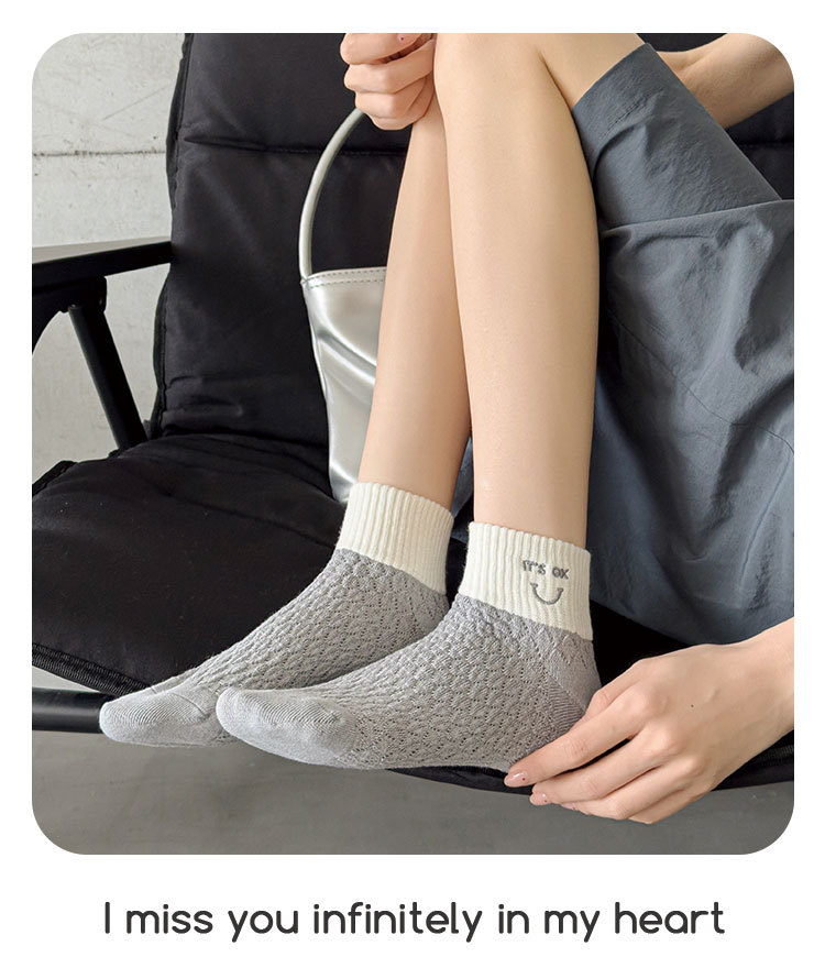🔥【5 párů】🧦Nový styl dámských ponožek, prodyšné a absorbující pot, bez zápachu, proti uškrcení【SIZE:35-44】