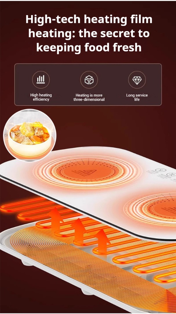 🏠🥗Izolační deska pro potraviny, multifunkční jídelní stůl pro domácnost s konstantní teplotou, inteligentní topný nástroj.