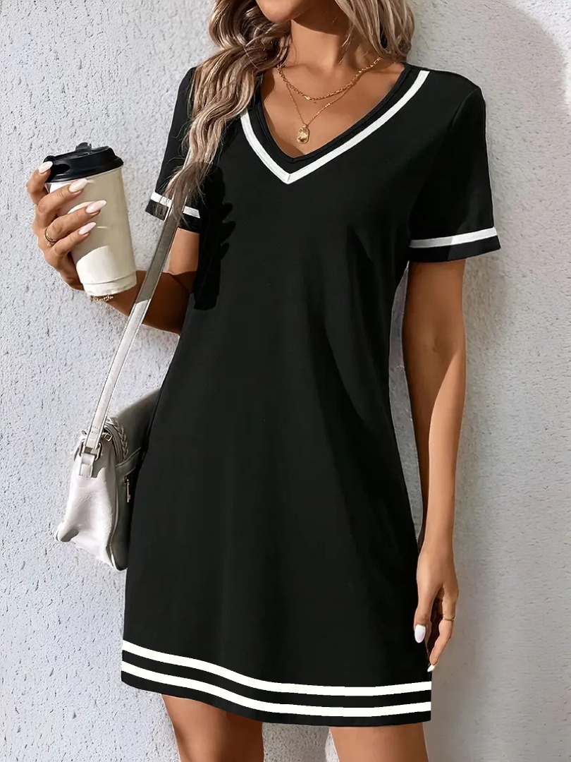 Dámské ležérní šaty s kontrastním lemem