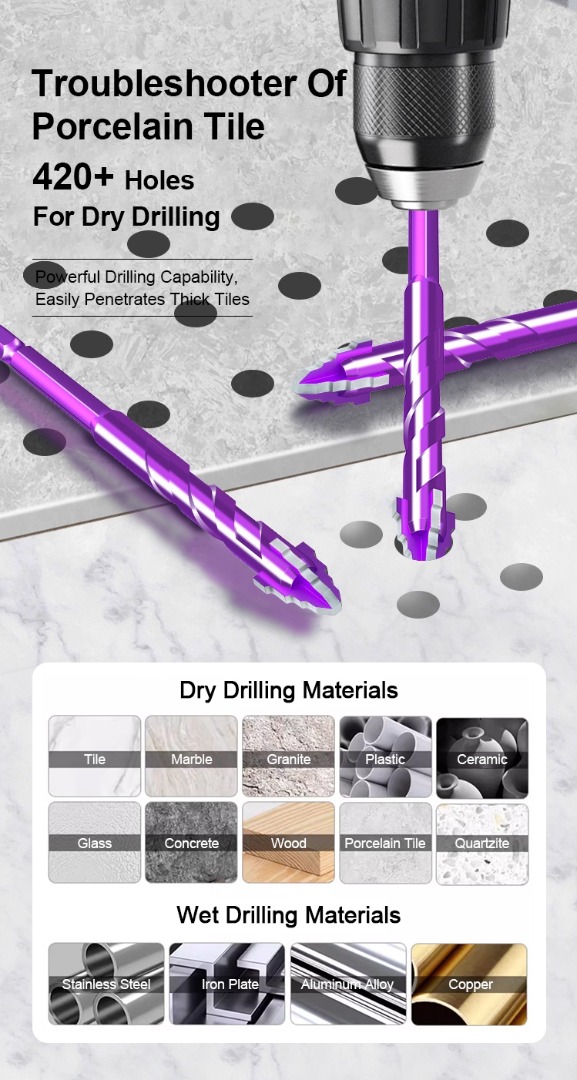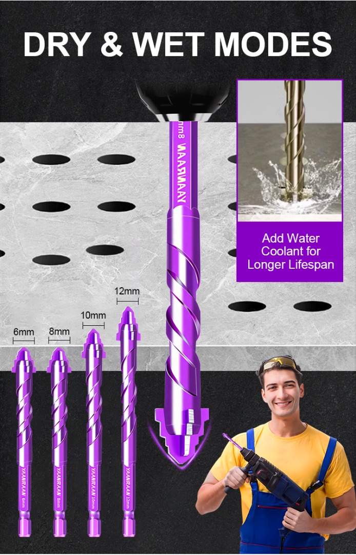 🧰⚒️【6-12 mm】Nový vroubkovaný vrták ze slitiny karbidu wolframu, ostrý a odolný proti opotřebení, vhodný pro mokré i suché vrtání při domácích úpravách.