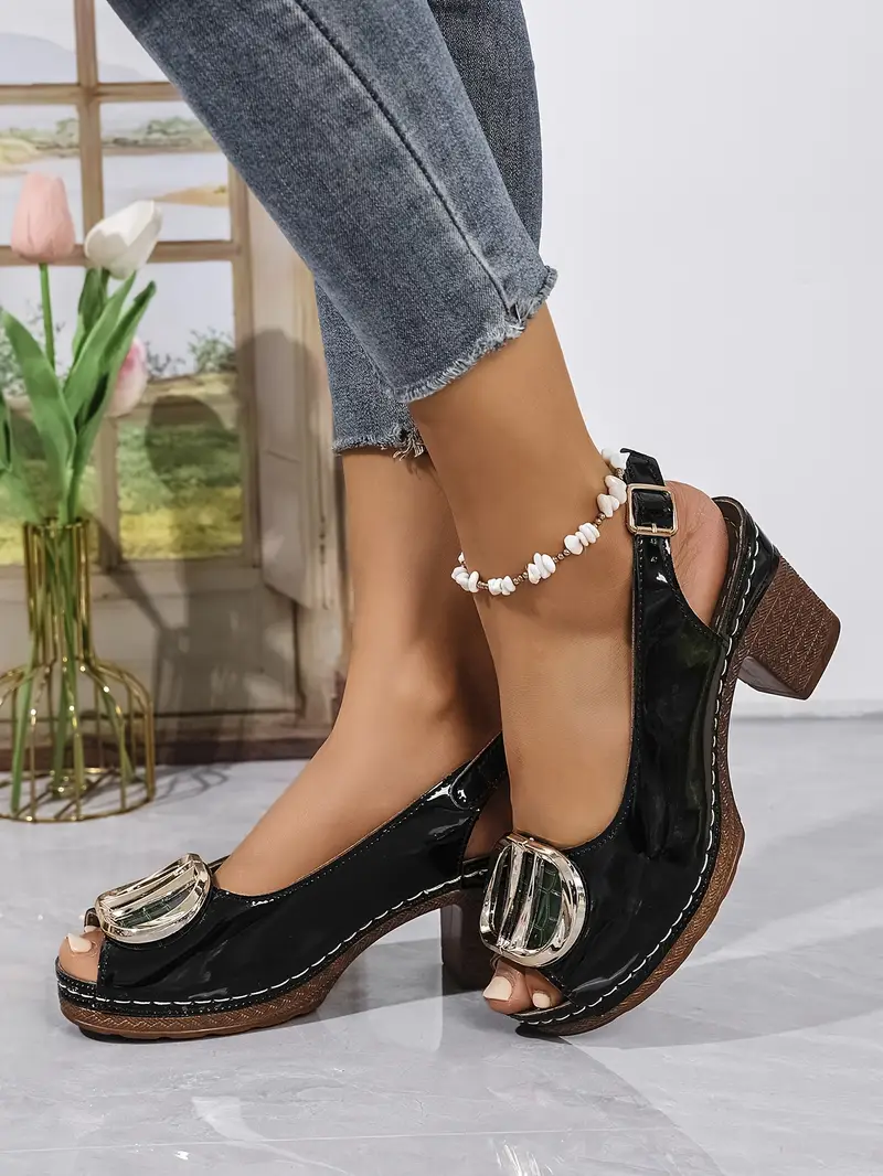 【36-43】 Elegantní dámské sandály v pevných, lesklých barvách pro běžné i formální příležitosti
