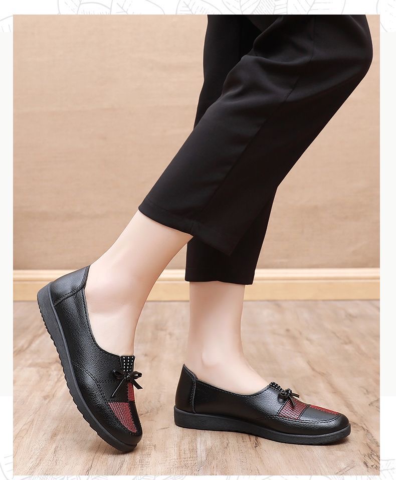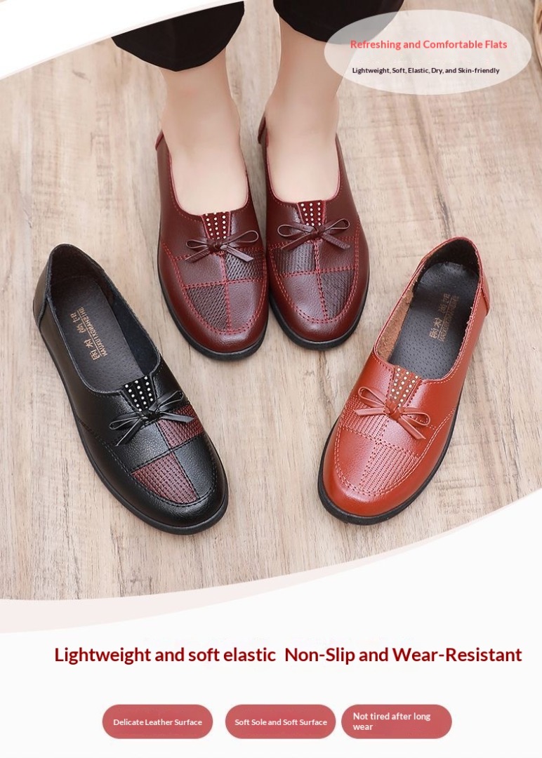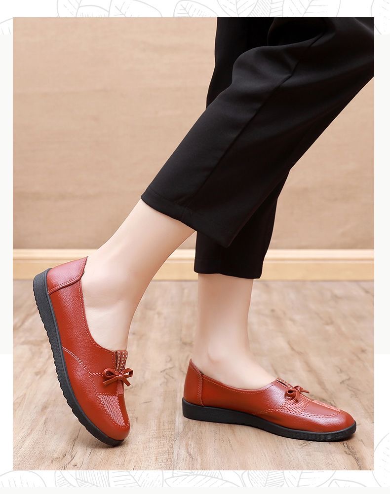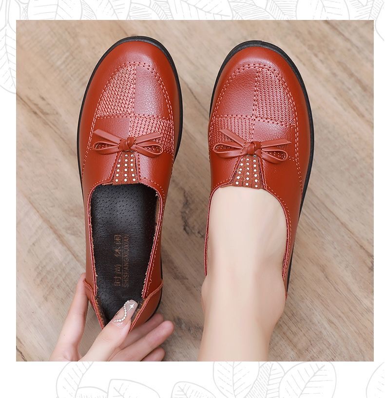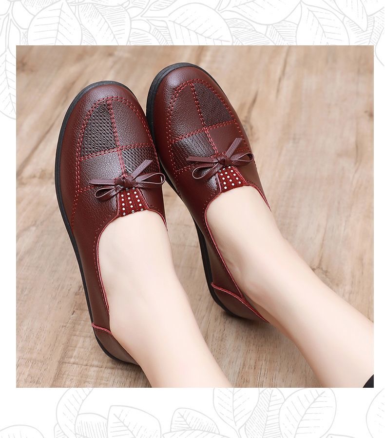 🥿🥿2026 Nová jarní dámská obuv, ležérní nepromokavé ploché kožené boty pro ženy středního a staršího věku, prodyšné a protiskluzové.