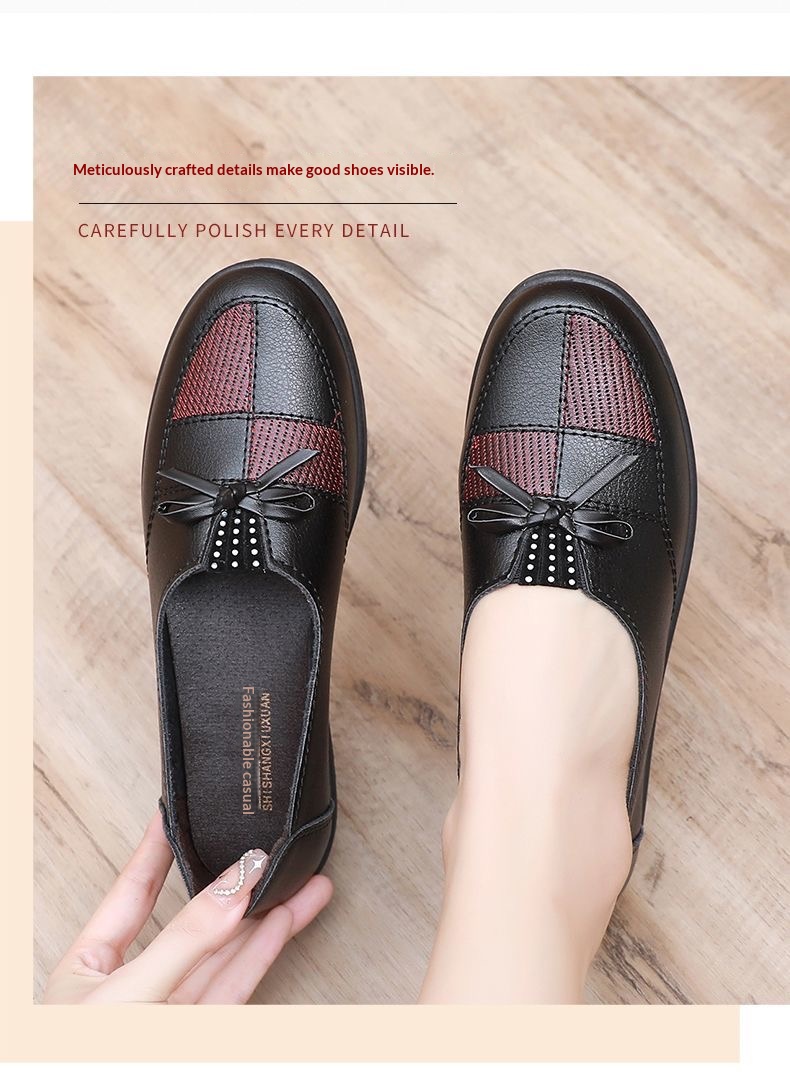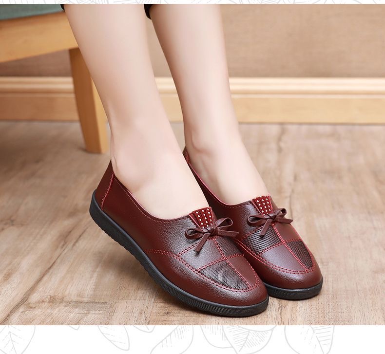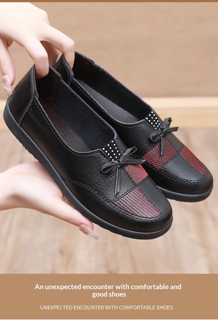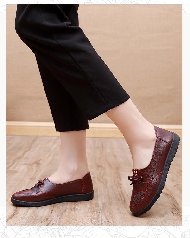 🥿🥿2026 Nová jarní dámská obuv, ležérní nepromokavé ploché kožené boty pro ženy středního a staršího věku, prodyšné a protiskluzové.